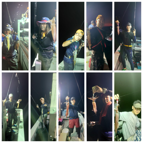 今週はダメダメ日が続いて、心折れそうな中で、お客さんが激シブでも行きますと言ってもらえて本当に感謝です😆 1日で劇的に変わるか心配だけど半分は期待で出港🦑 なんと😀!!劇的に変わってくれました😆 19時30分頃から入りだし、22時納竿までポツポツいい感じでした😆 4人様全員赤イカ20前後でナイスでした👌 赤イカ、スルメ、鯖😊 今日もありがとうございました。 引き続き6月からも平日は22時納竿、氷無し9000円(5月より1000円UP)にするか、通常どおり23時納竿、氷有り11000円にするか検討中です🤔 週末は通常どおり乗合23時納竿(釣果しだいサービス延長有り)氷有り11000円。 チャーター23時納竿(釣果しだいサービス延長有り)氷有り72000円になっております。